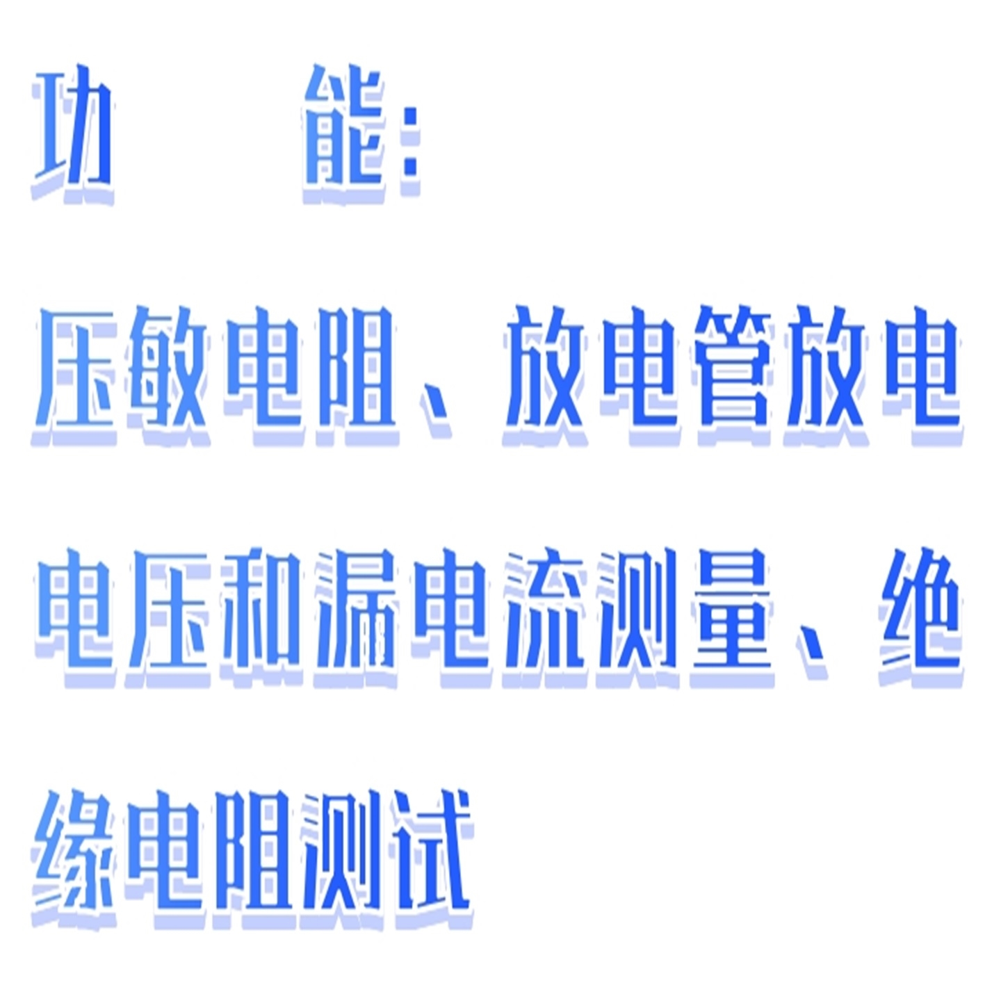 功 能:壓敏電阻、放電管放電電壓和漏電流測量、絕緣電阻測試